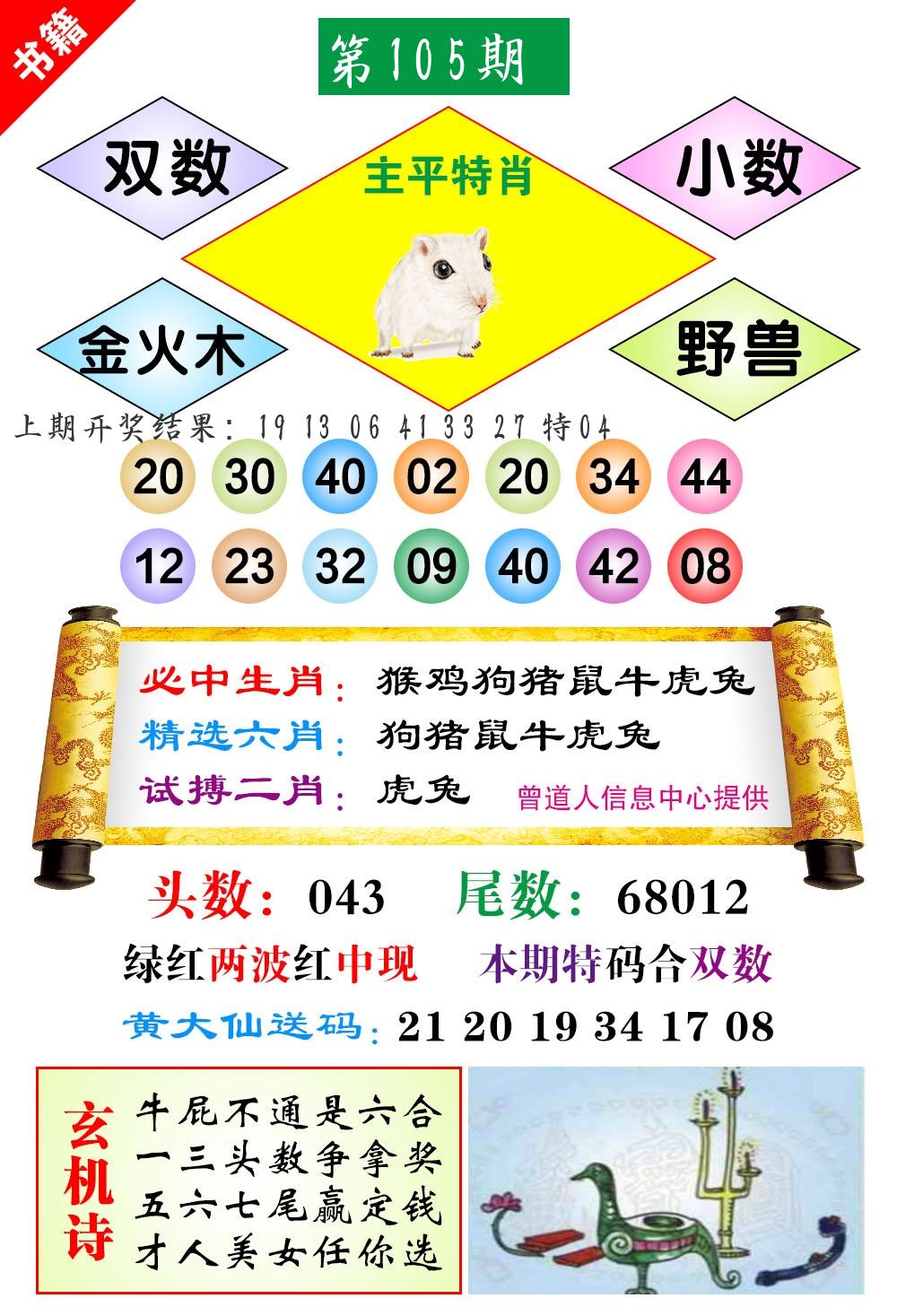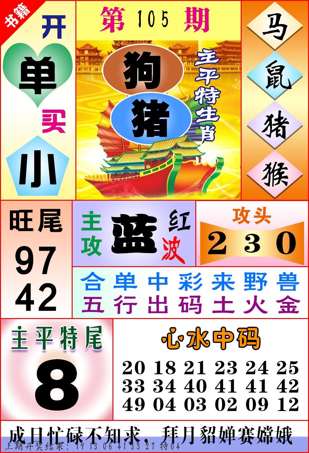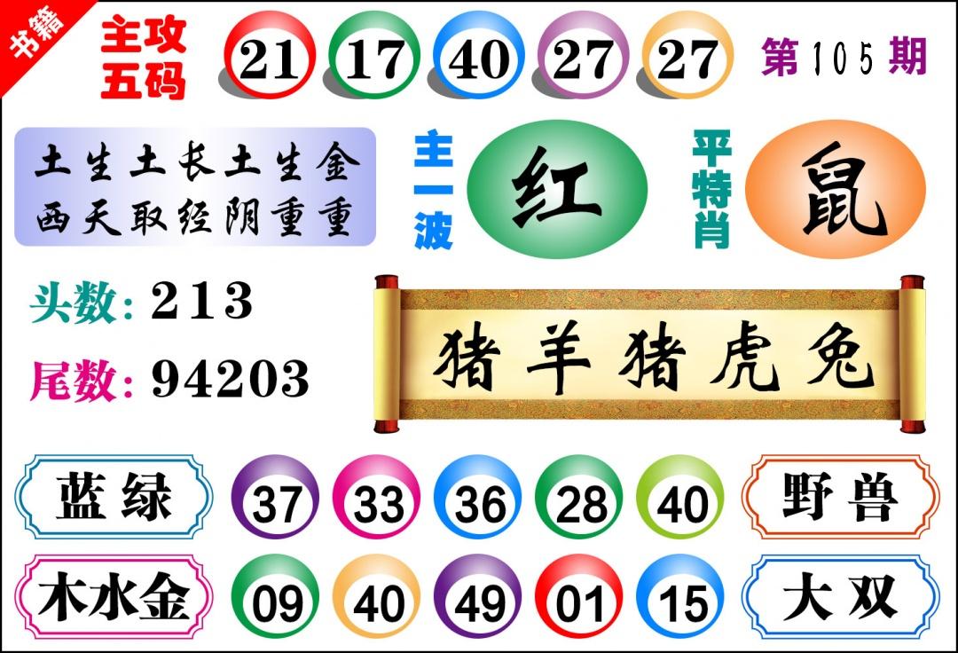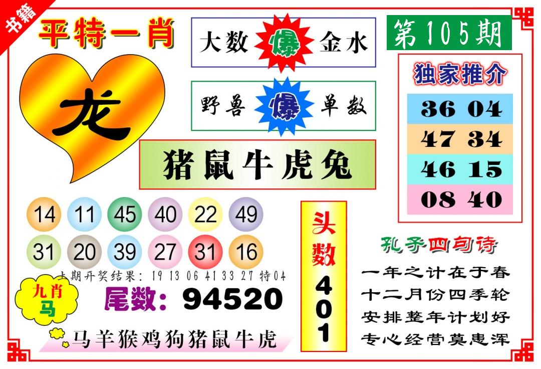 | 105期推荐七肖: 龙牛猪虎猴鼠羊 -平均压 |