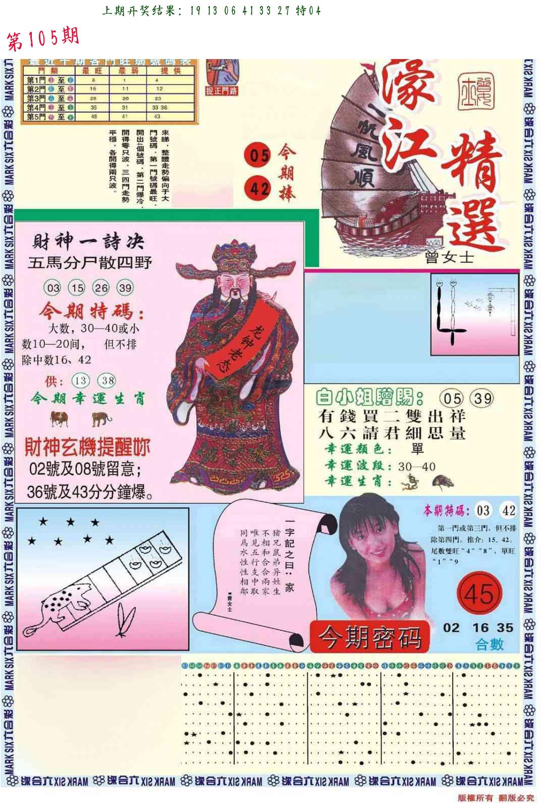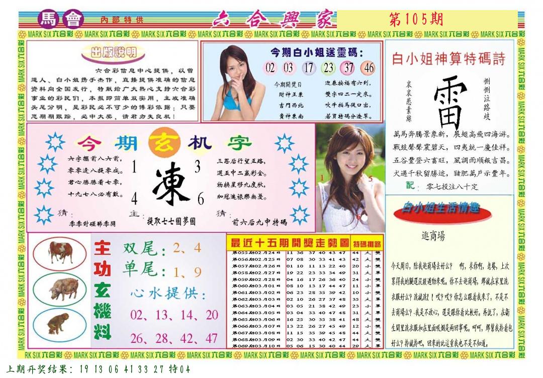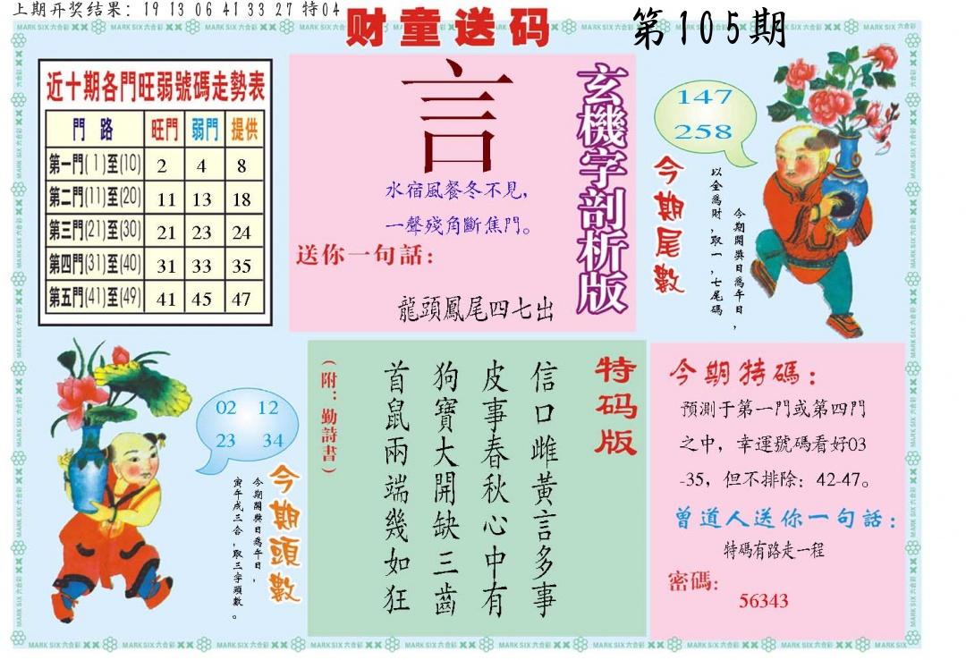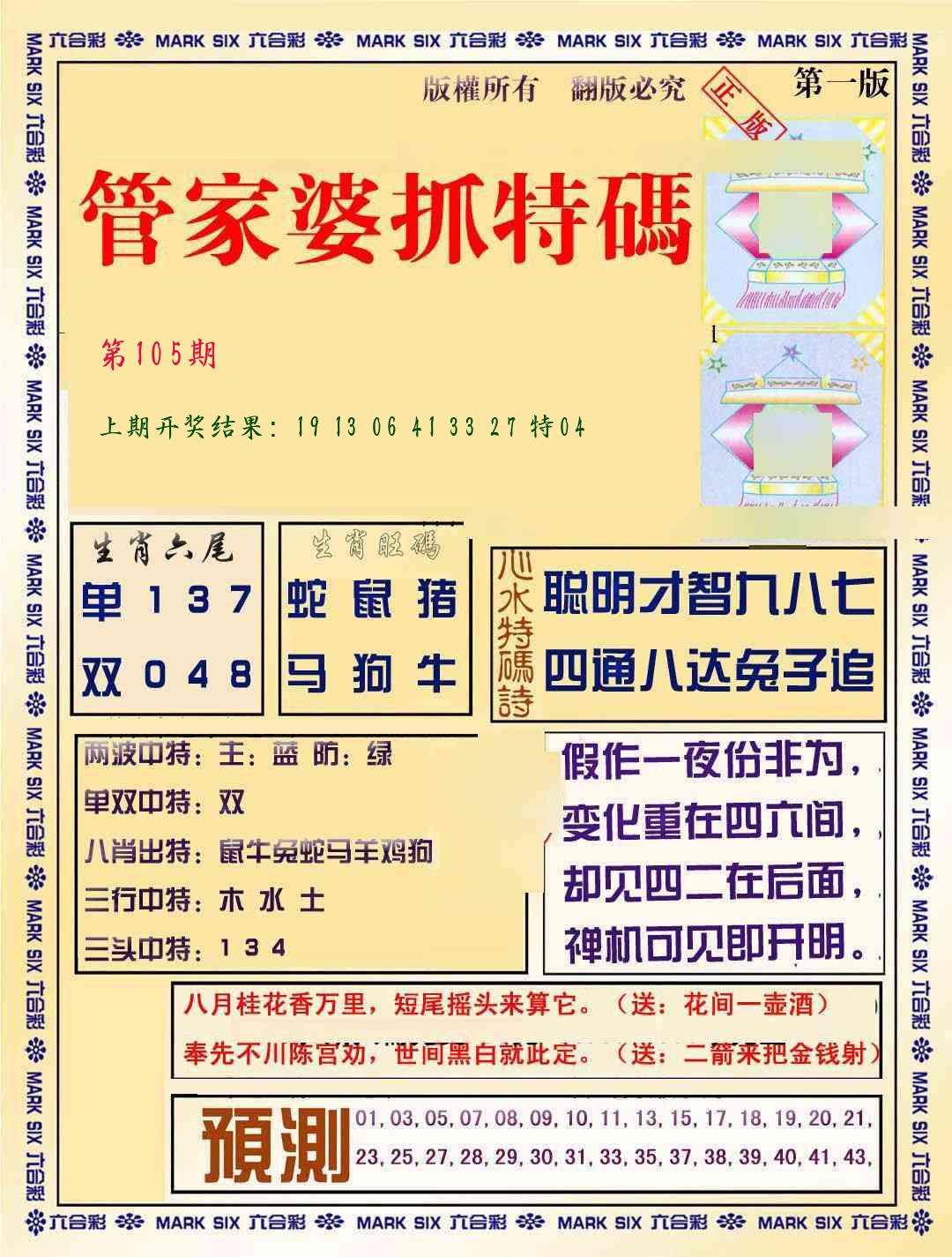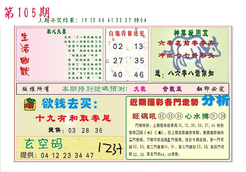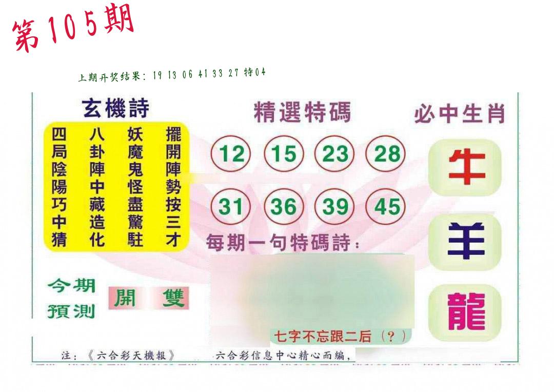 103期 开46鸡准 |