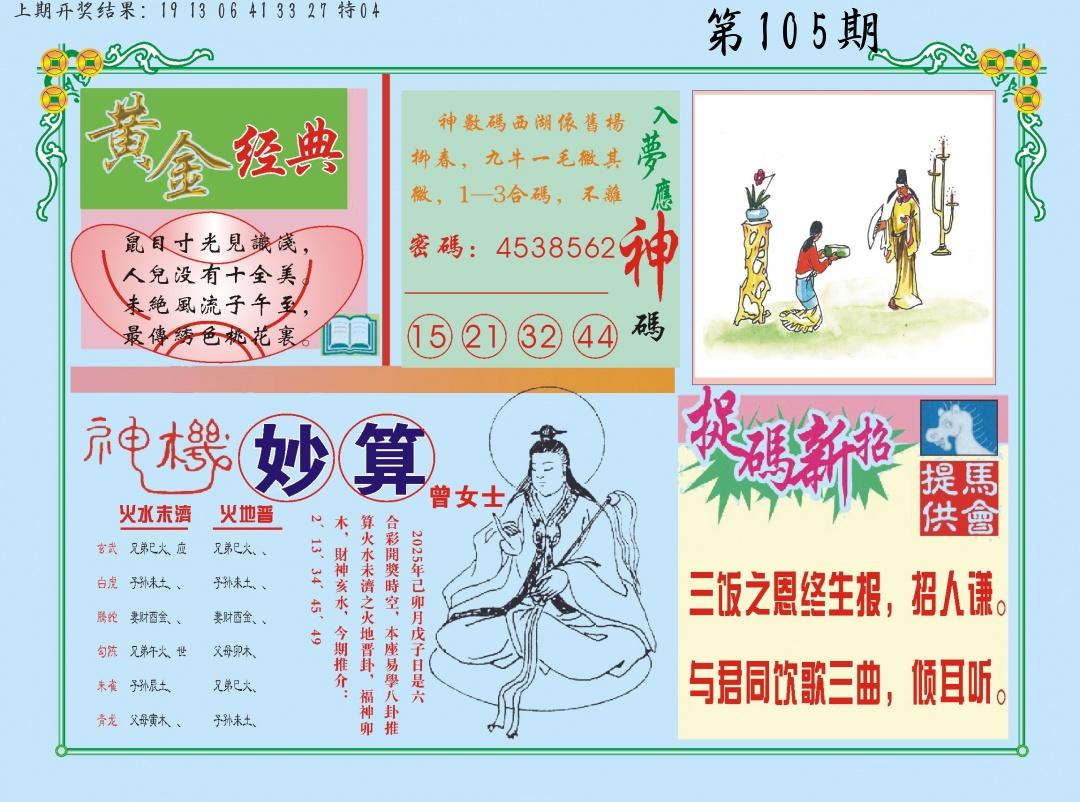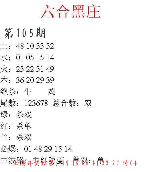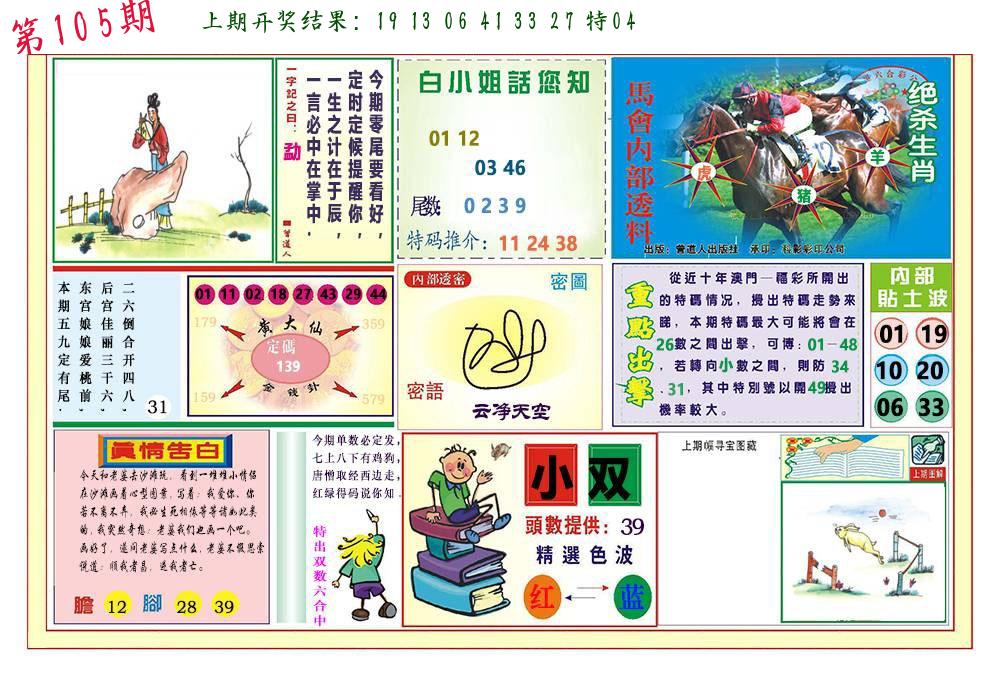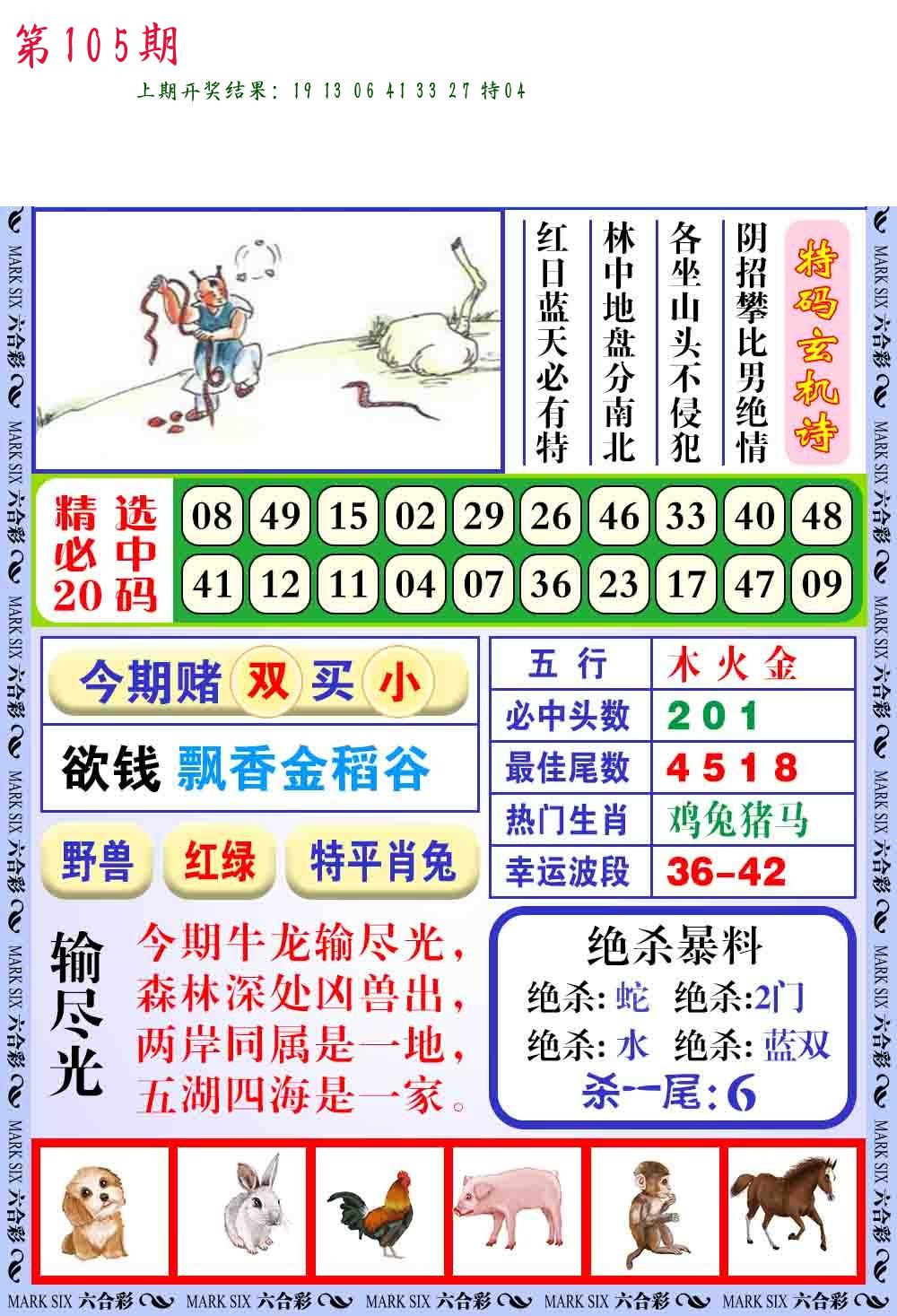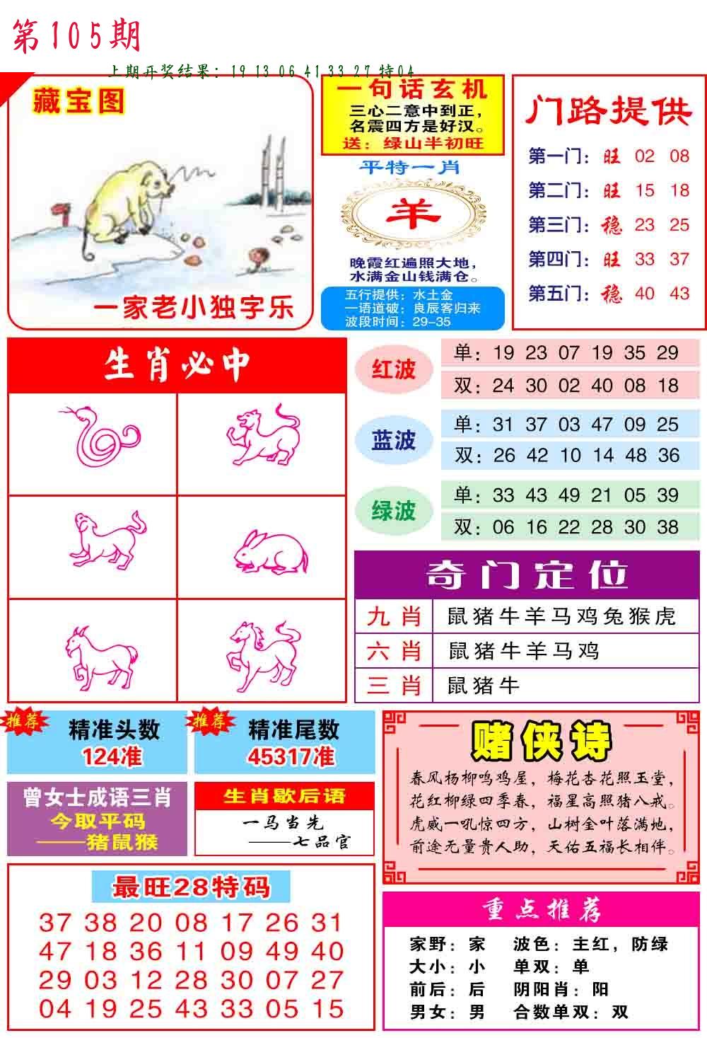 105期绝杀一波 【绿波】 开 38蛇错 |