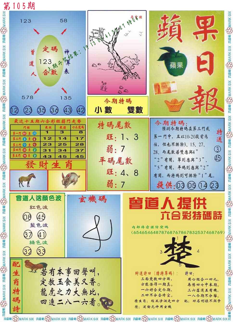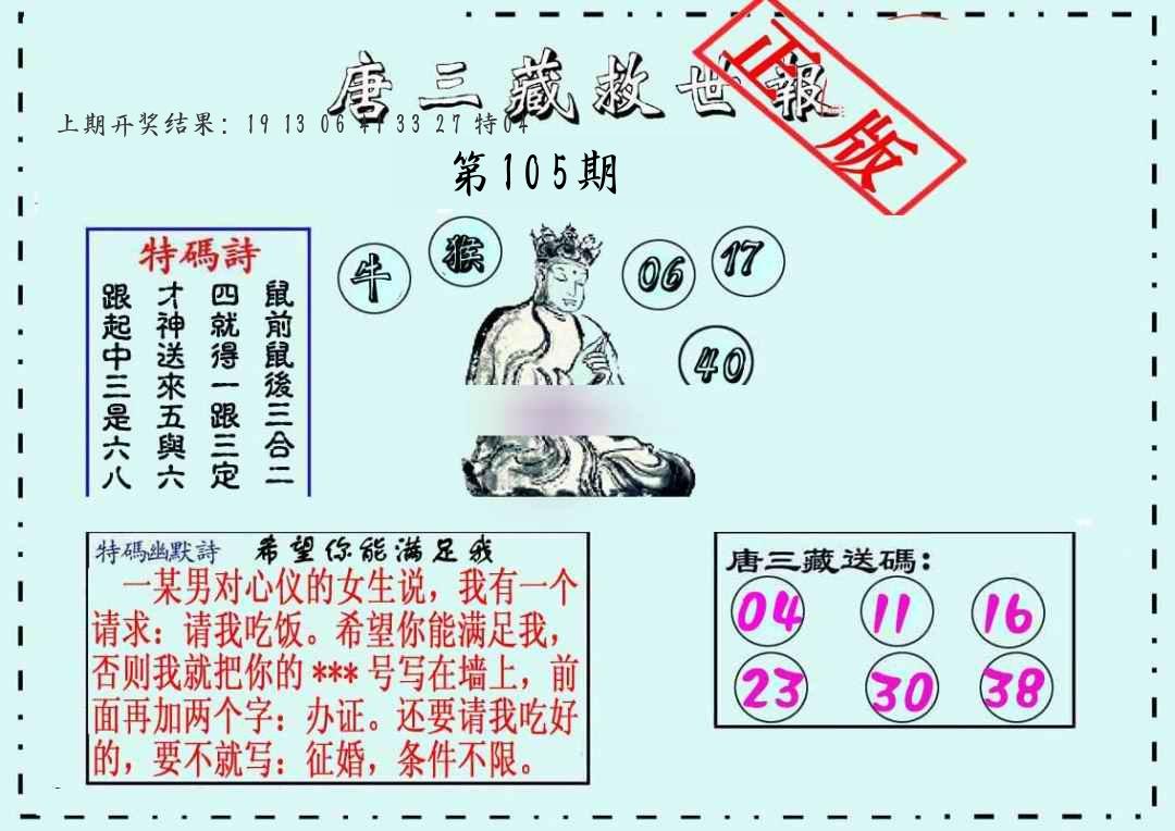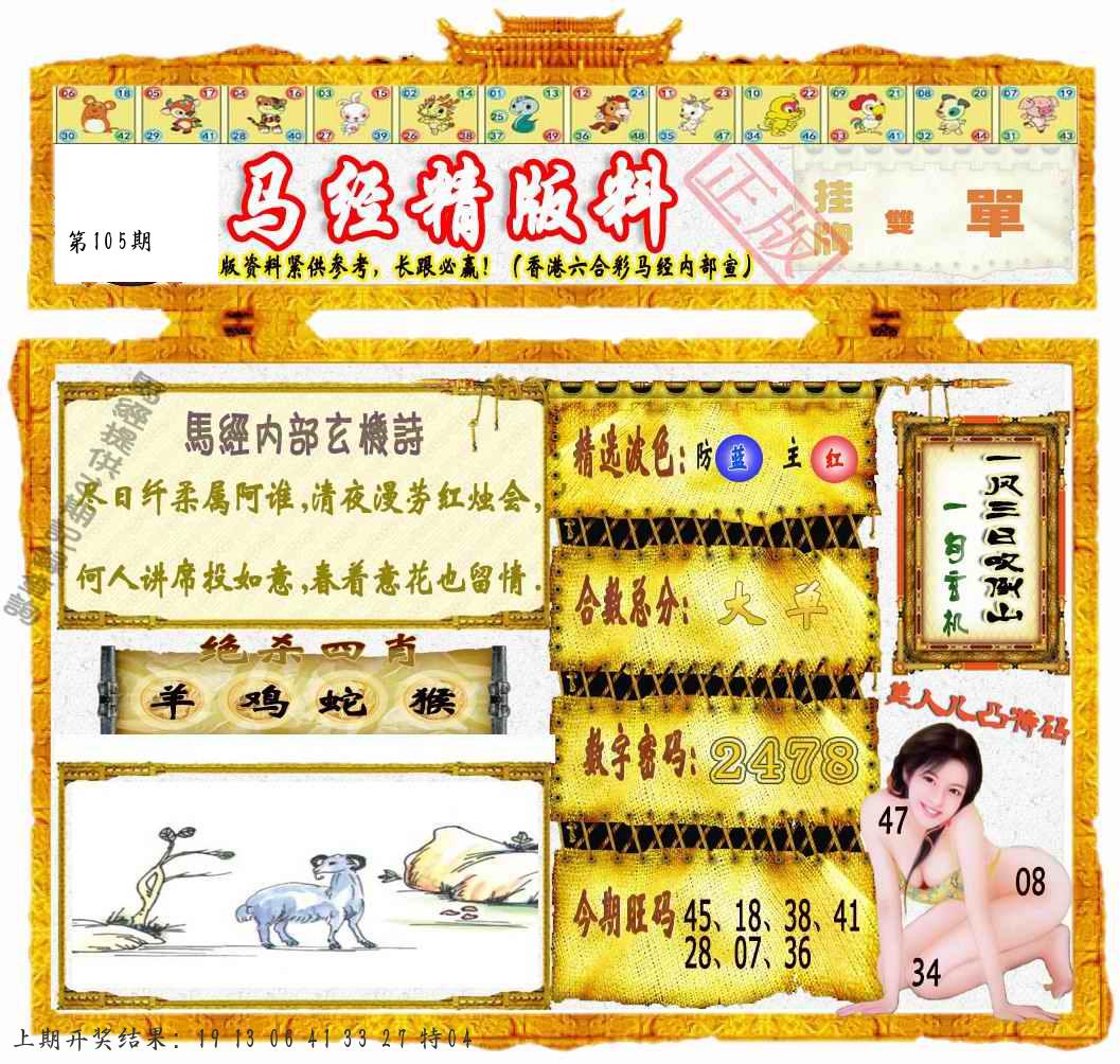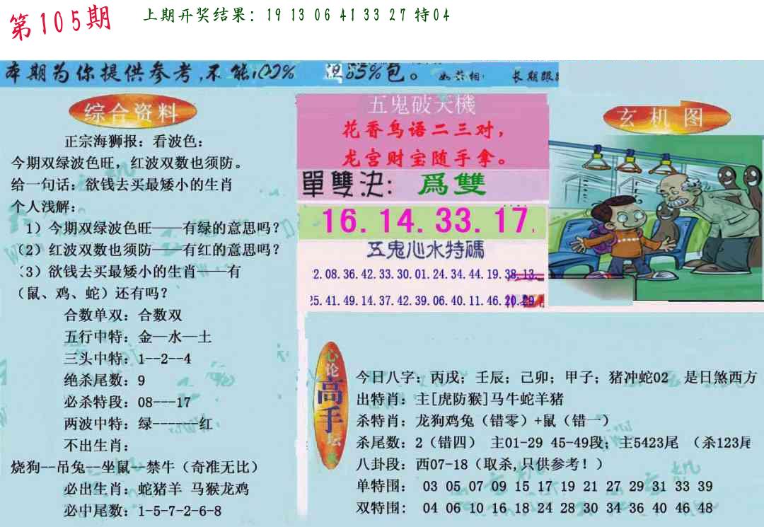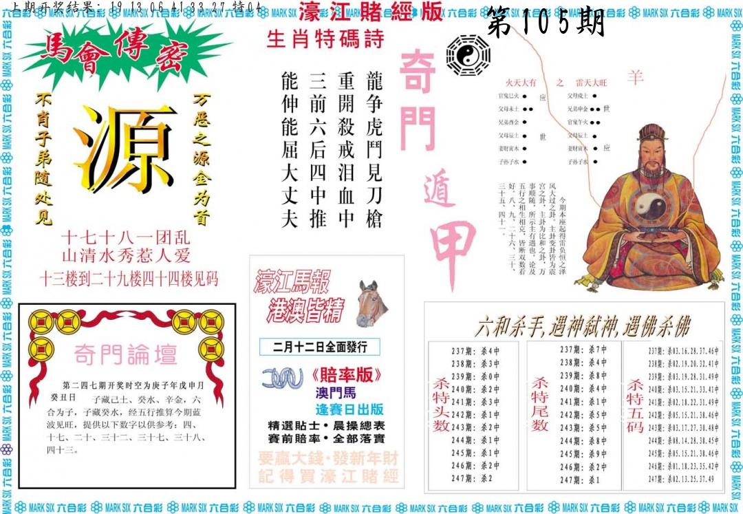 105期绝杀一波 【绿波】 开 38蛇错 |