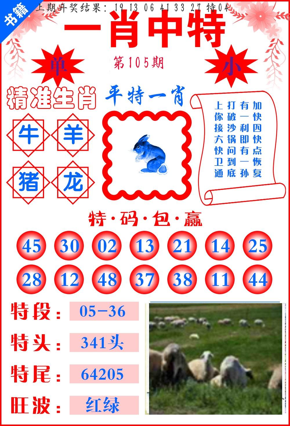 104期必中九肖 (04兔对)