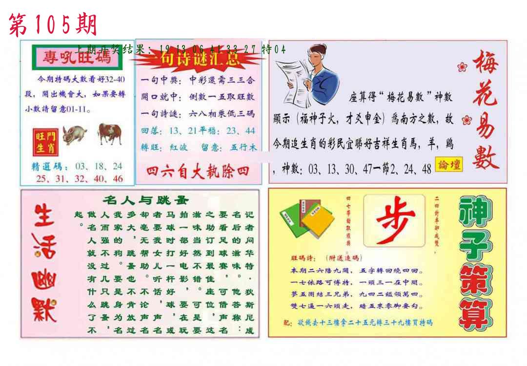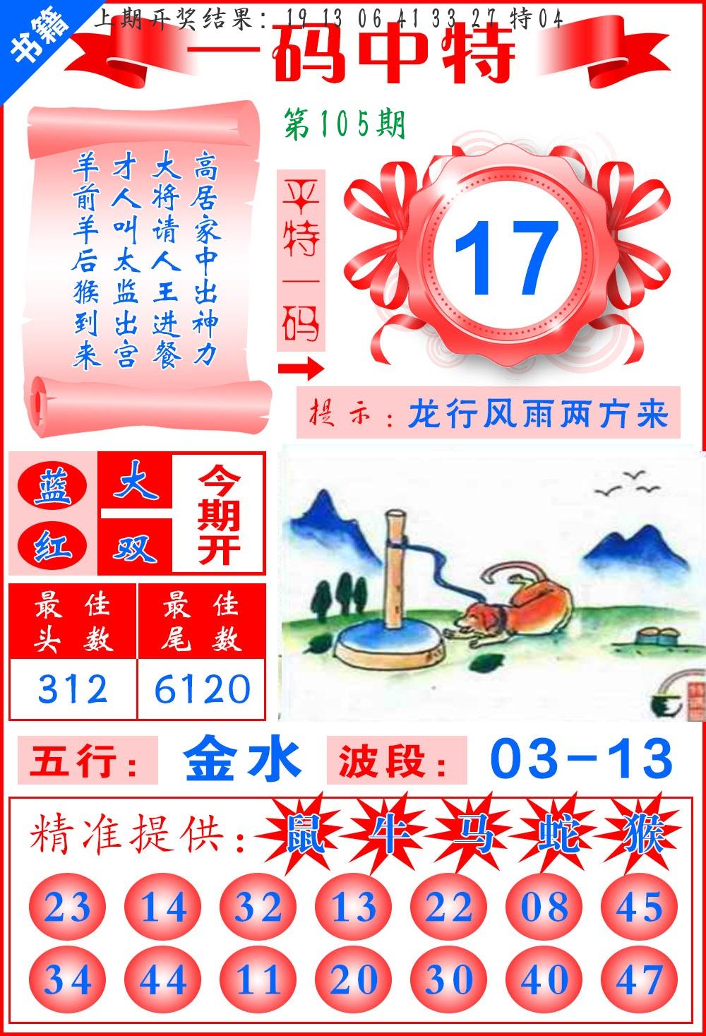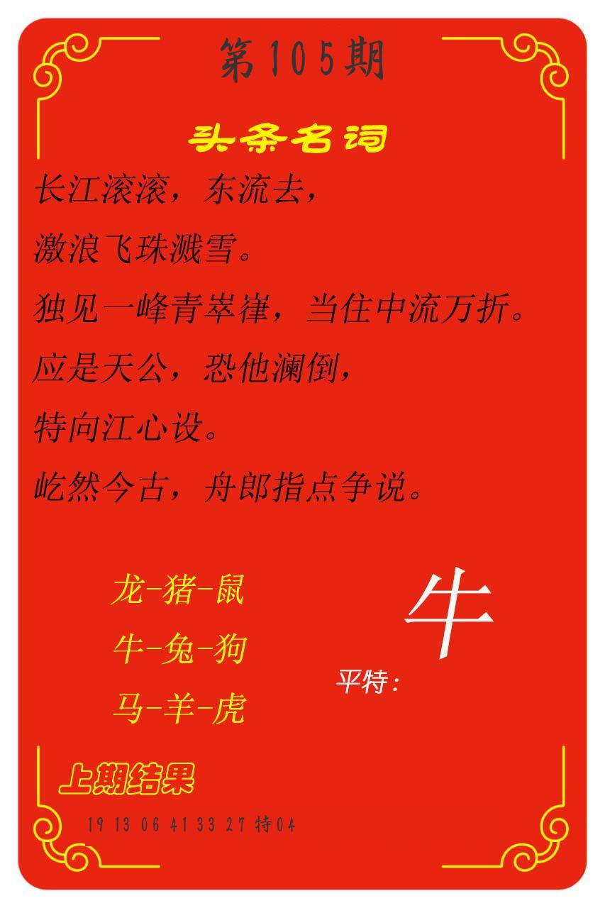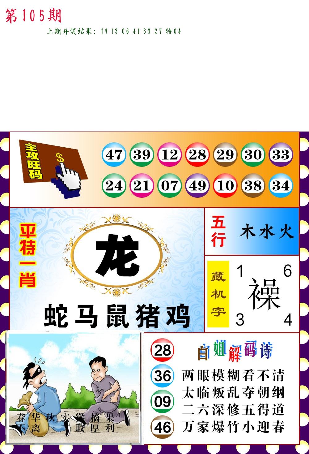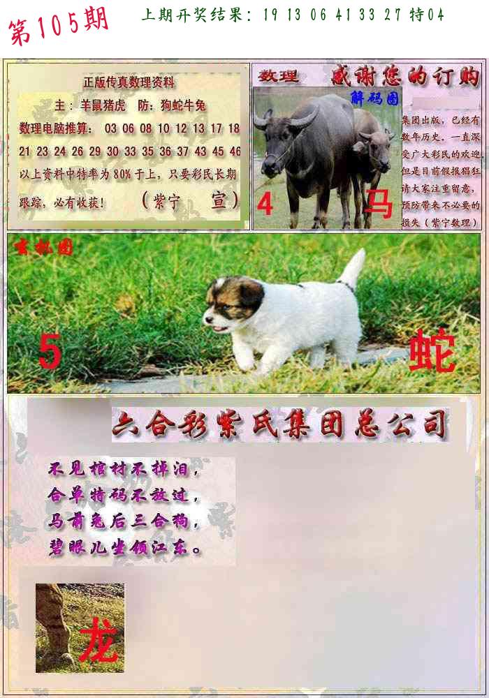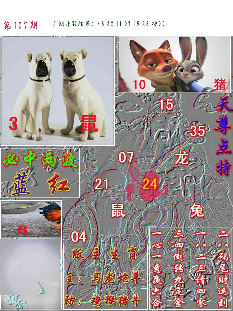 | 103期推荐五肖: 马鼠兔牛龙 ~~稳准狠 |