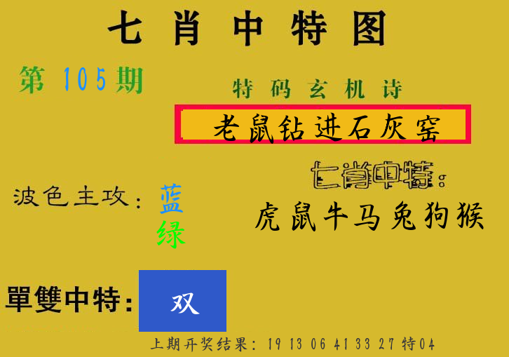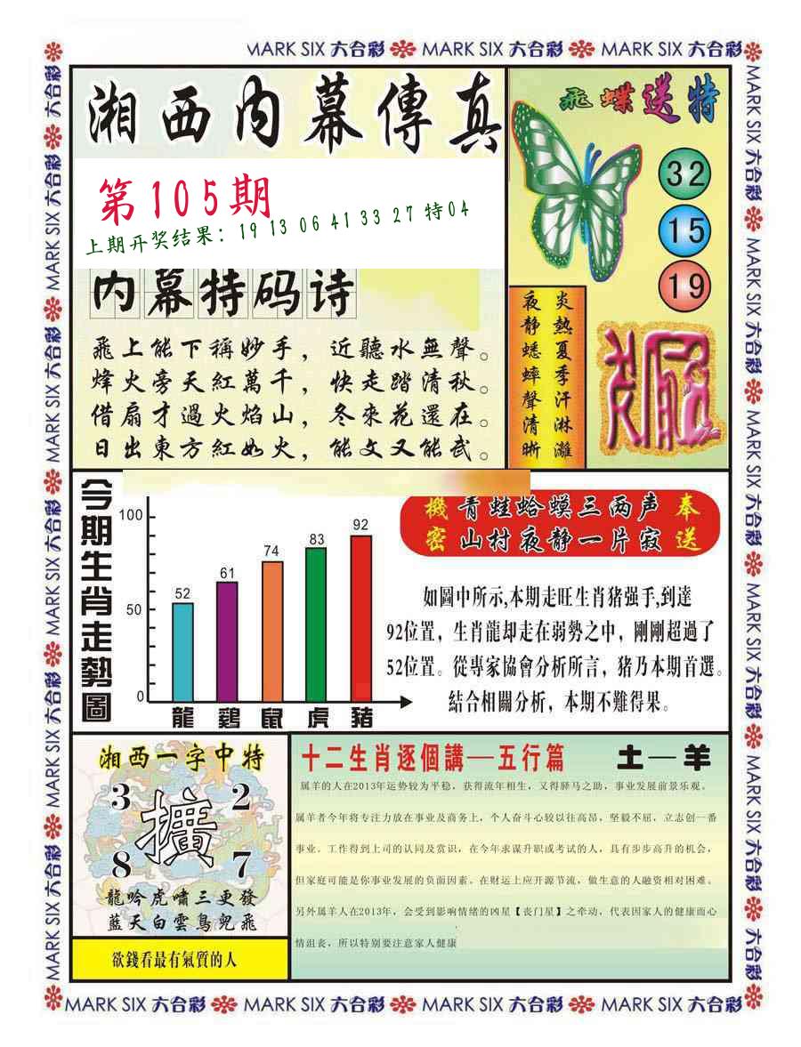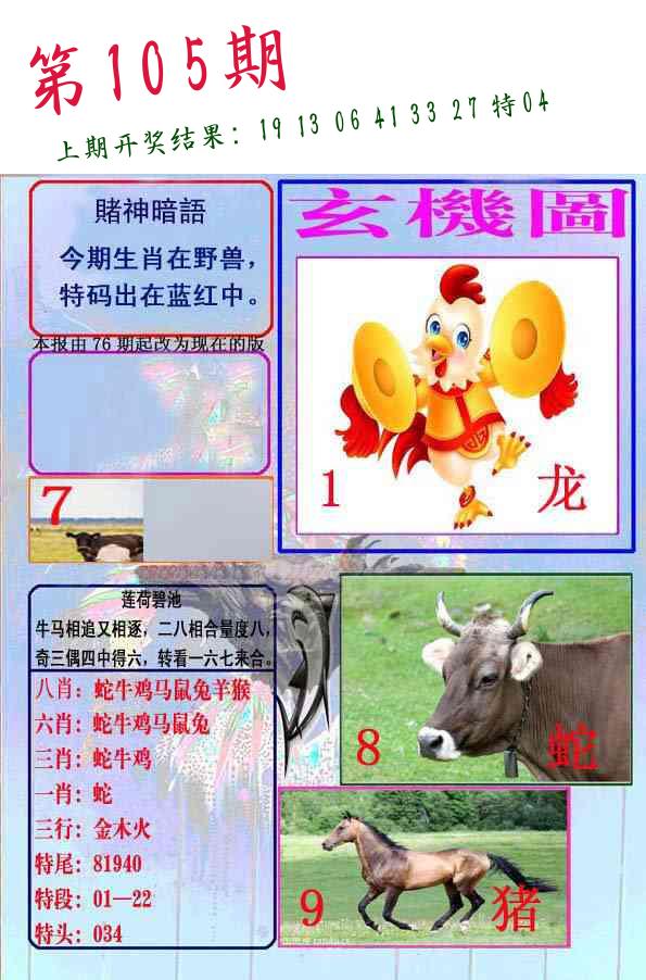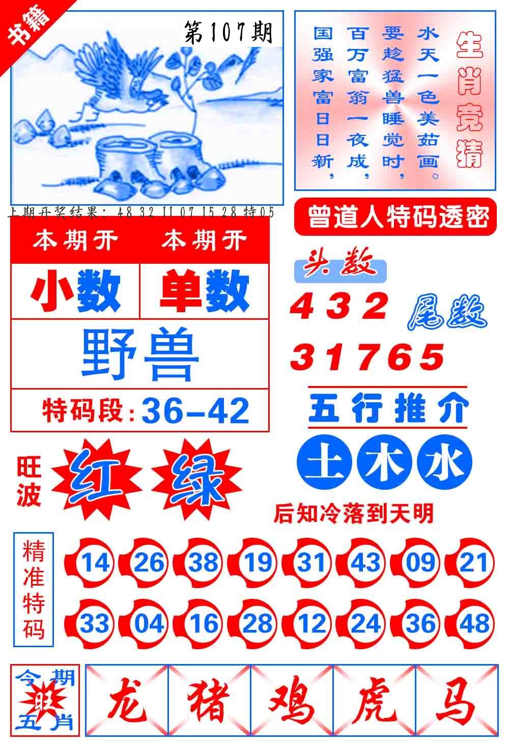 106期 家 【鸡羊牛】 野 【蛇龙鼠】开 05虎错 |