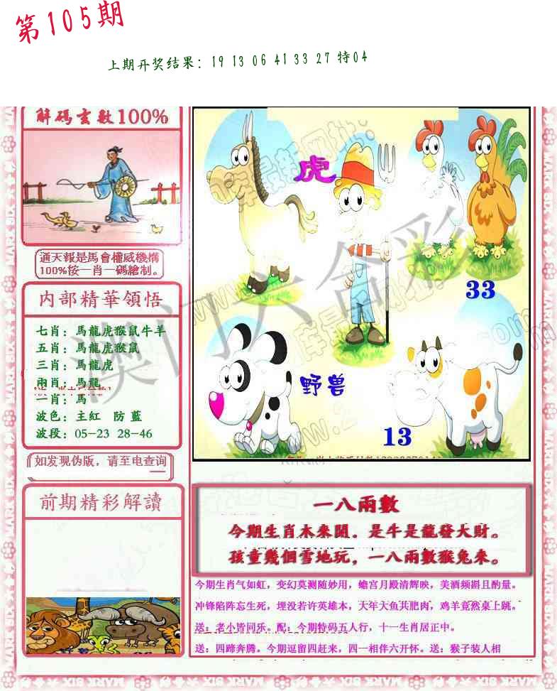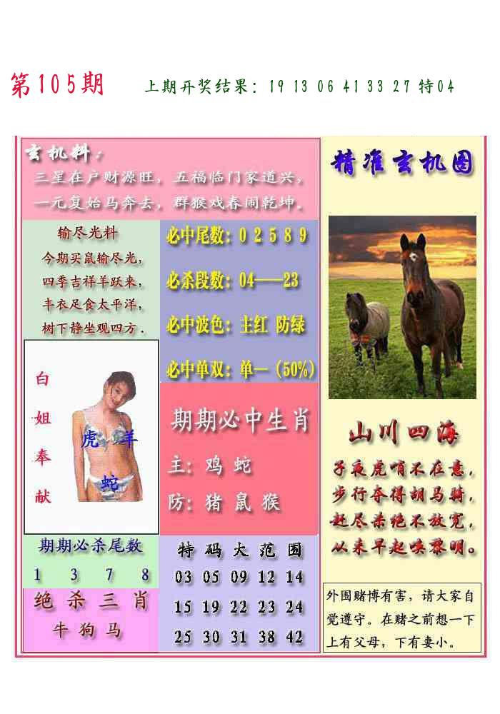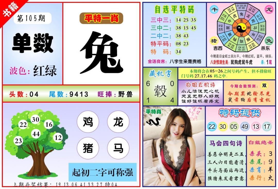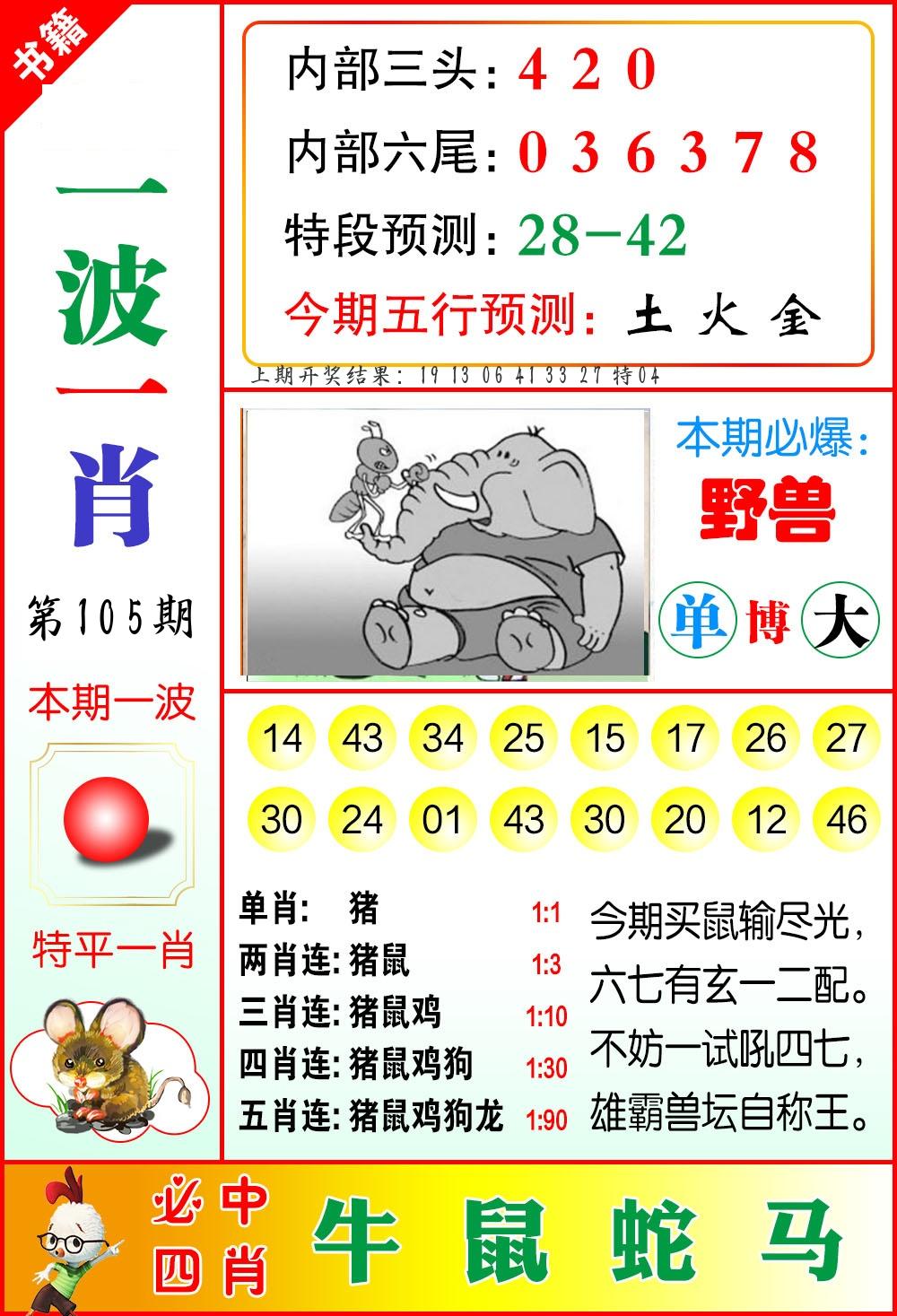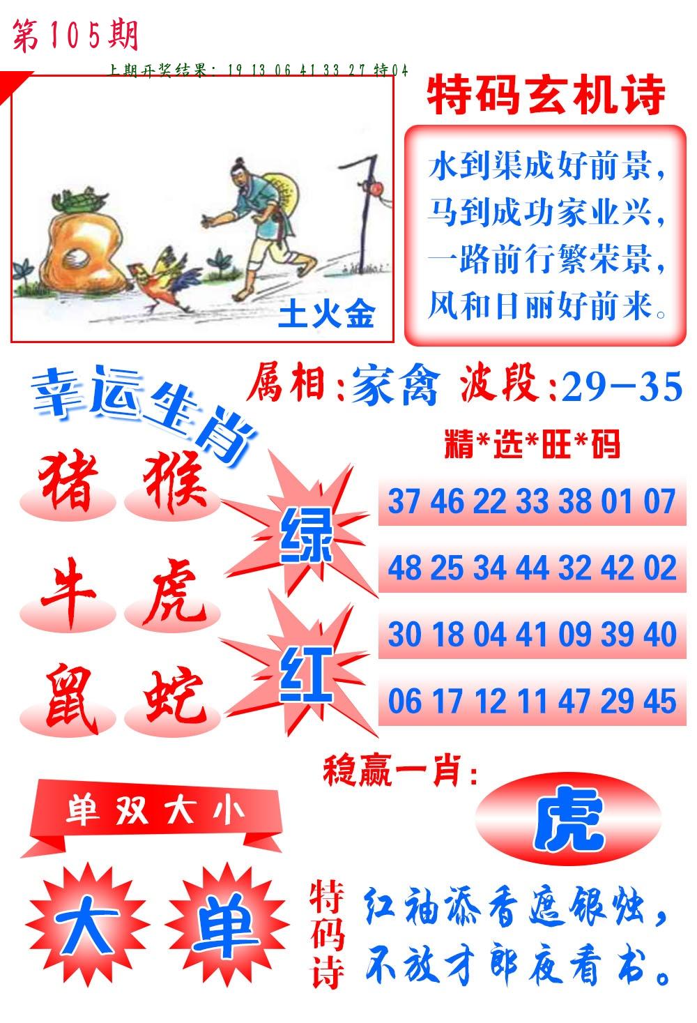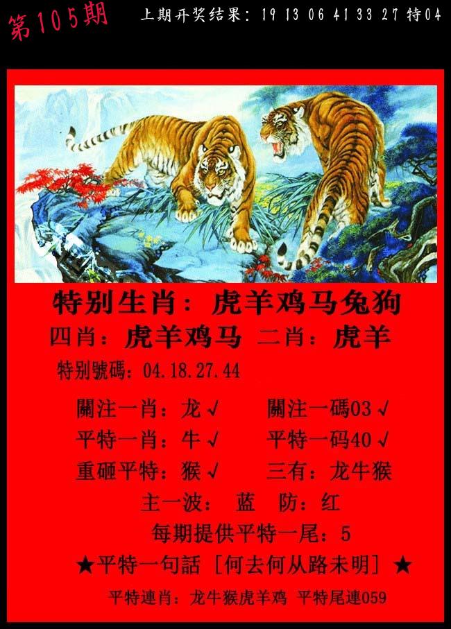 106期绝杀一波 【红波】 开 05虎对 |