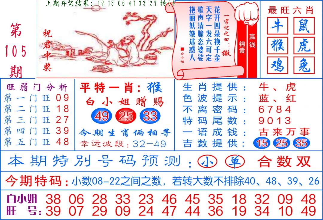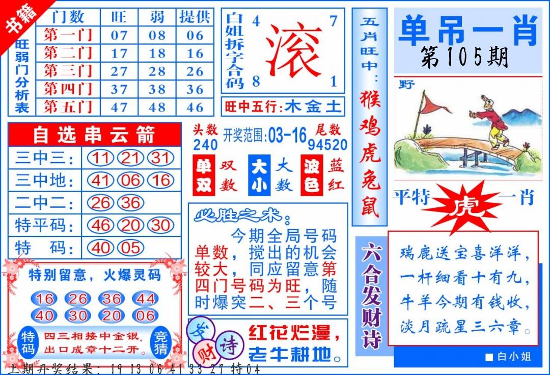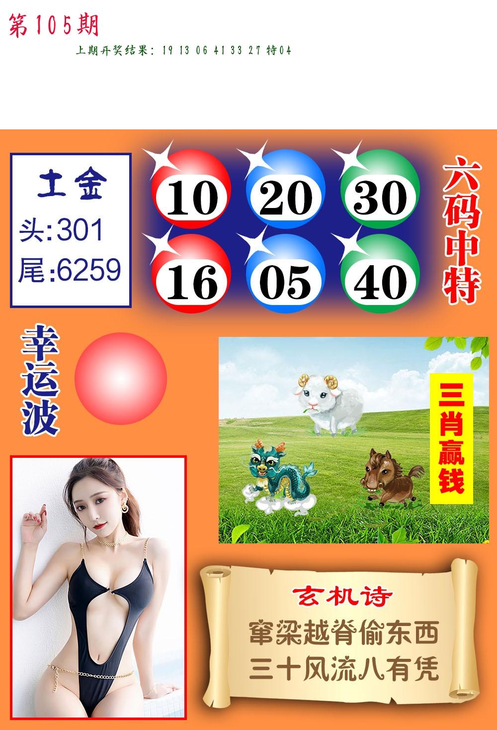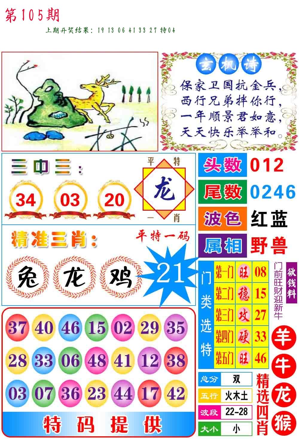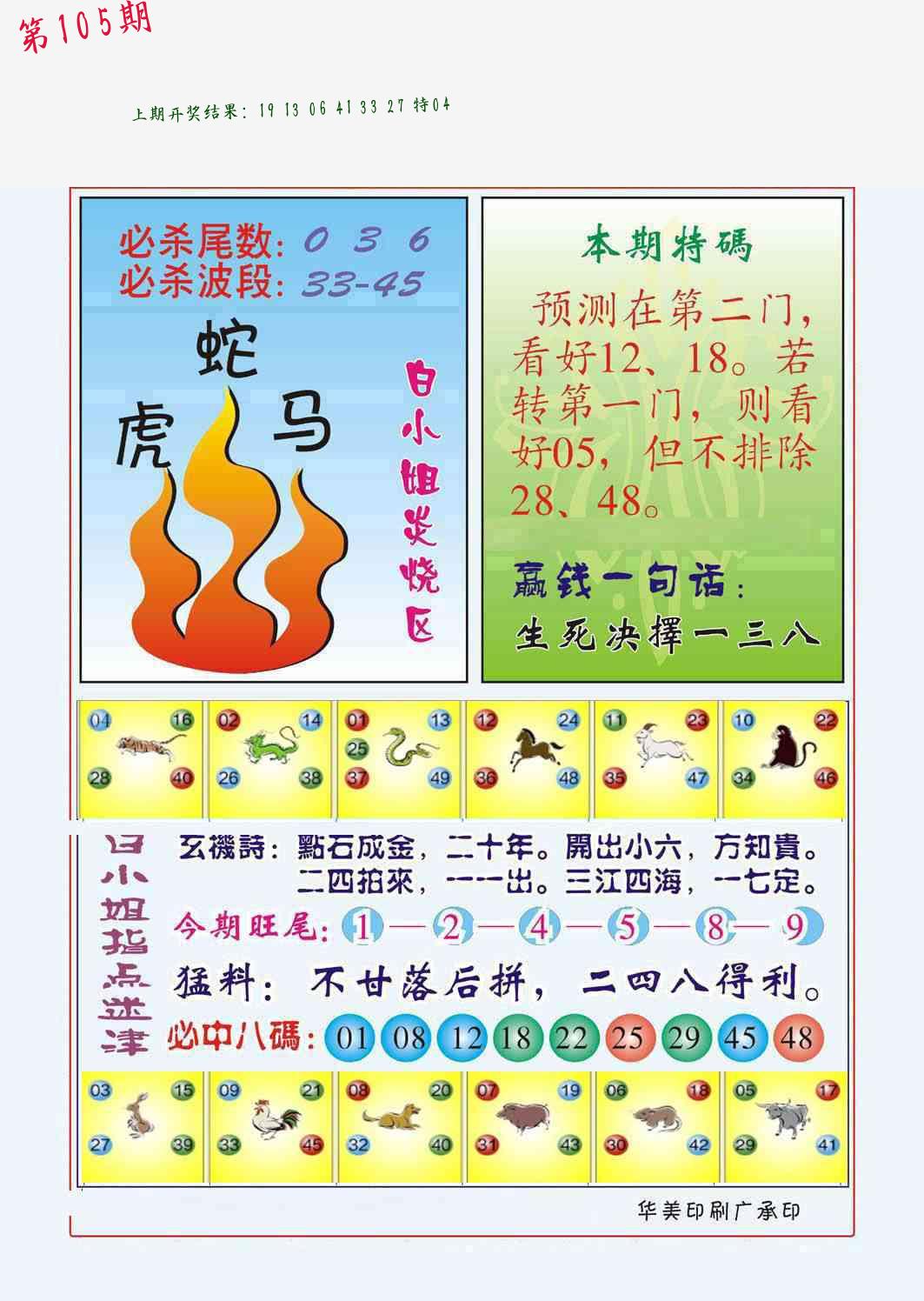 106期绝杀一波 【红波】 开 05虎对 |