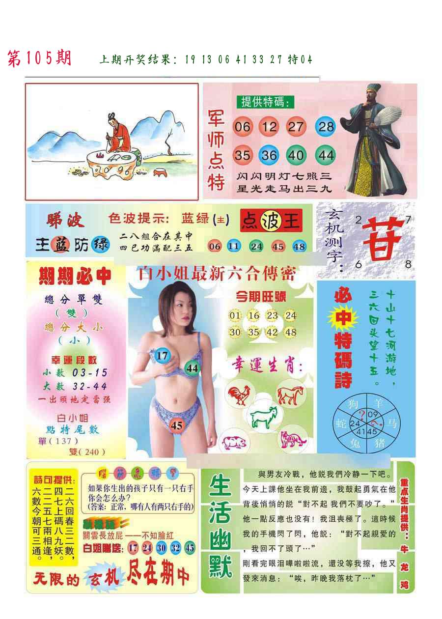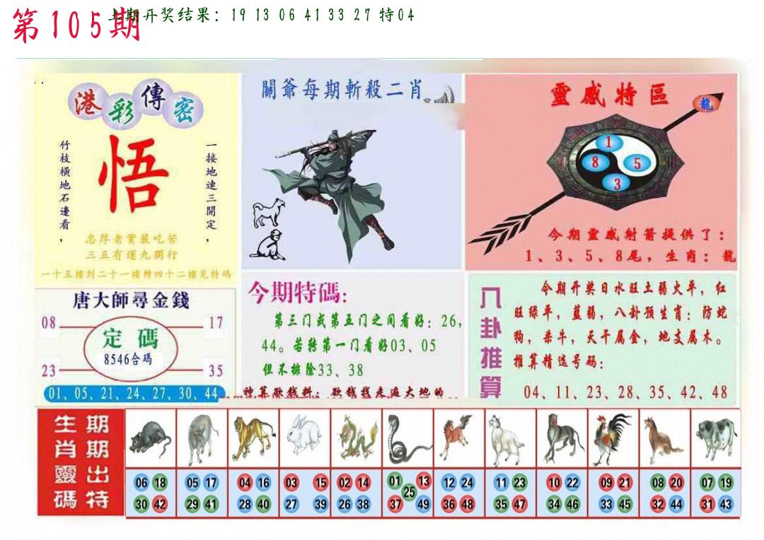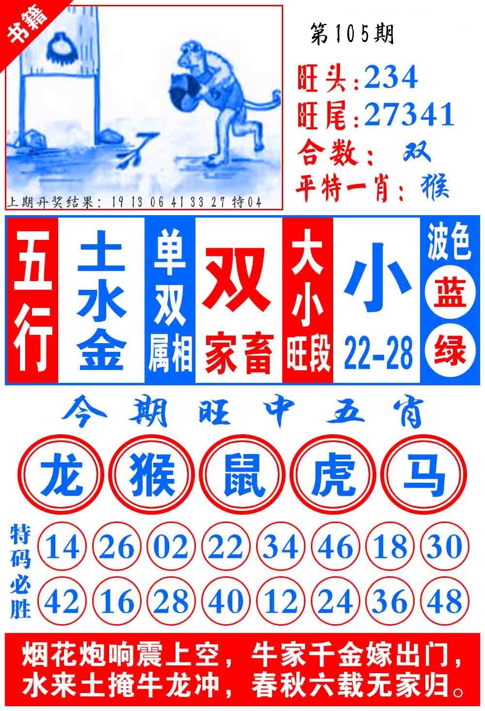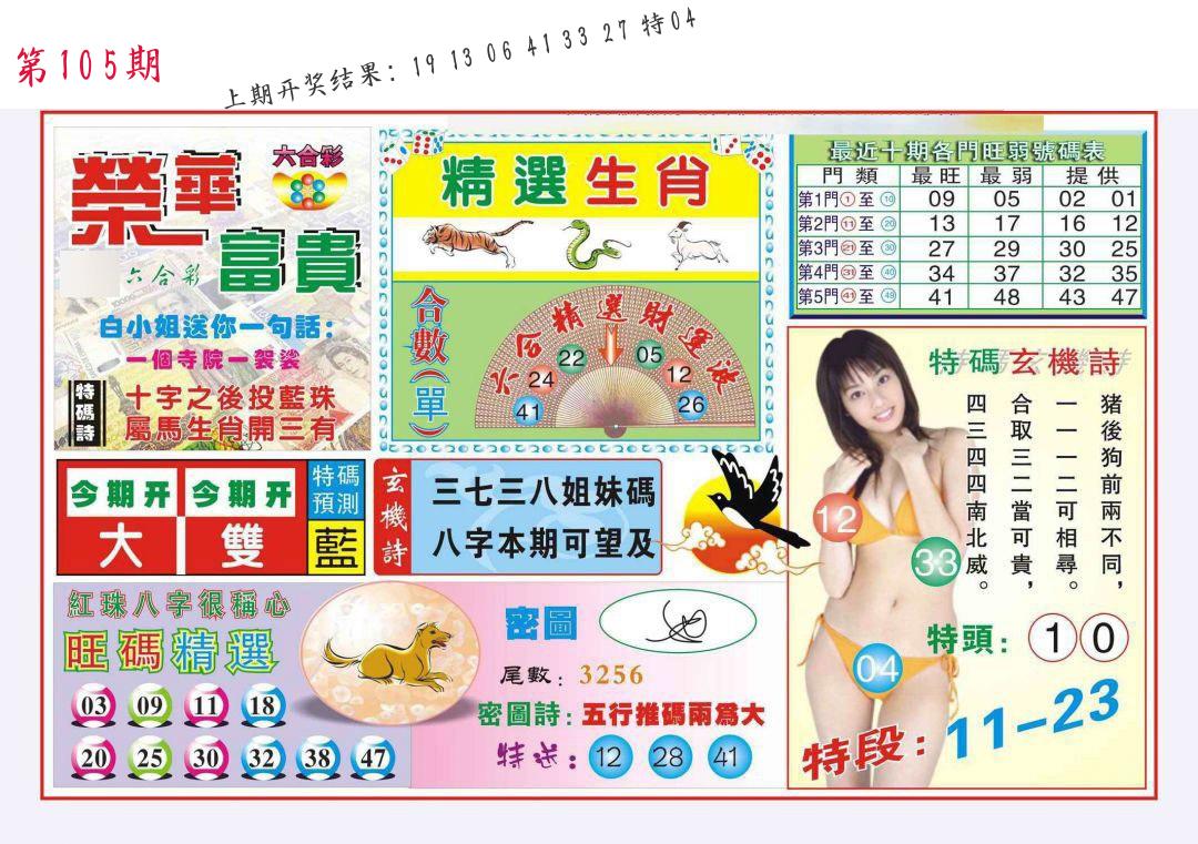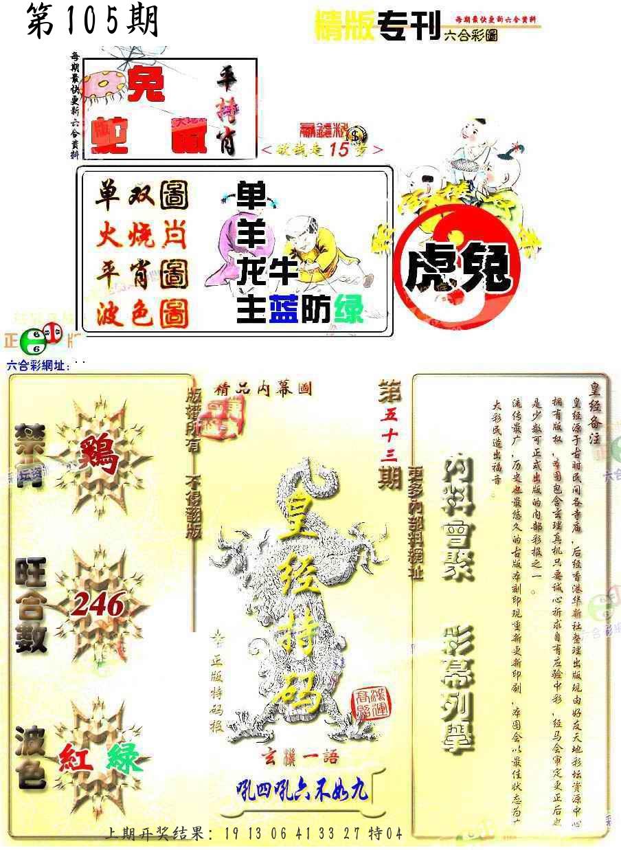 106期绝杀一波 【红波】 开 05虎对 |