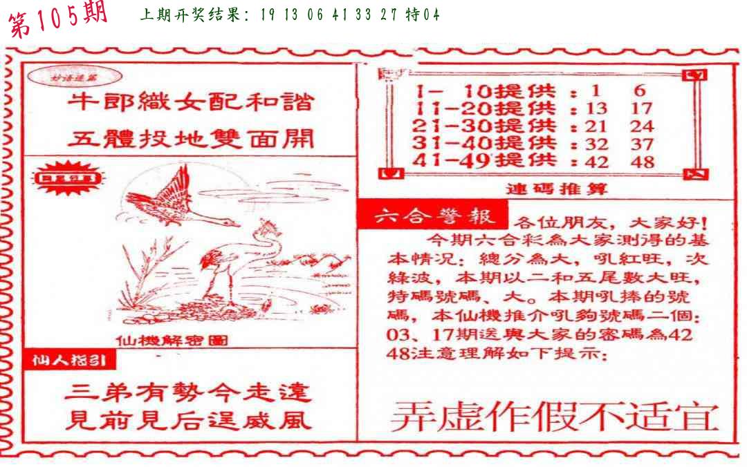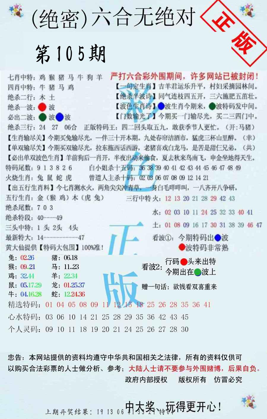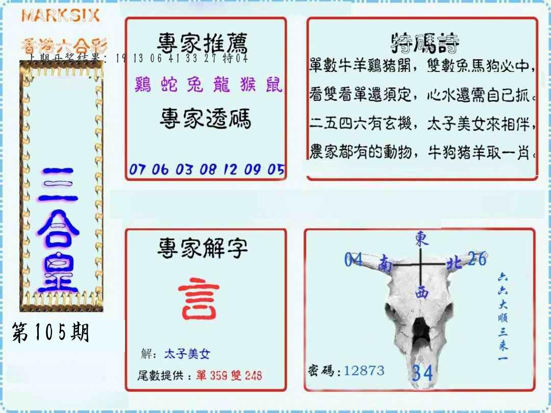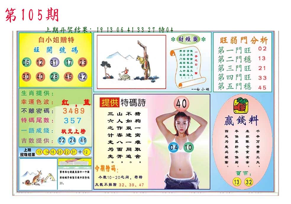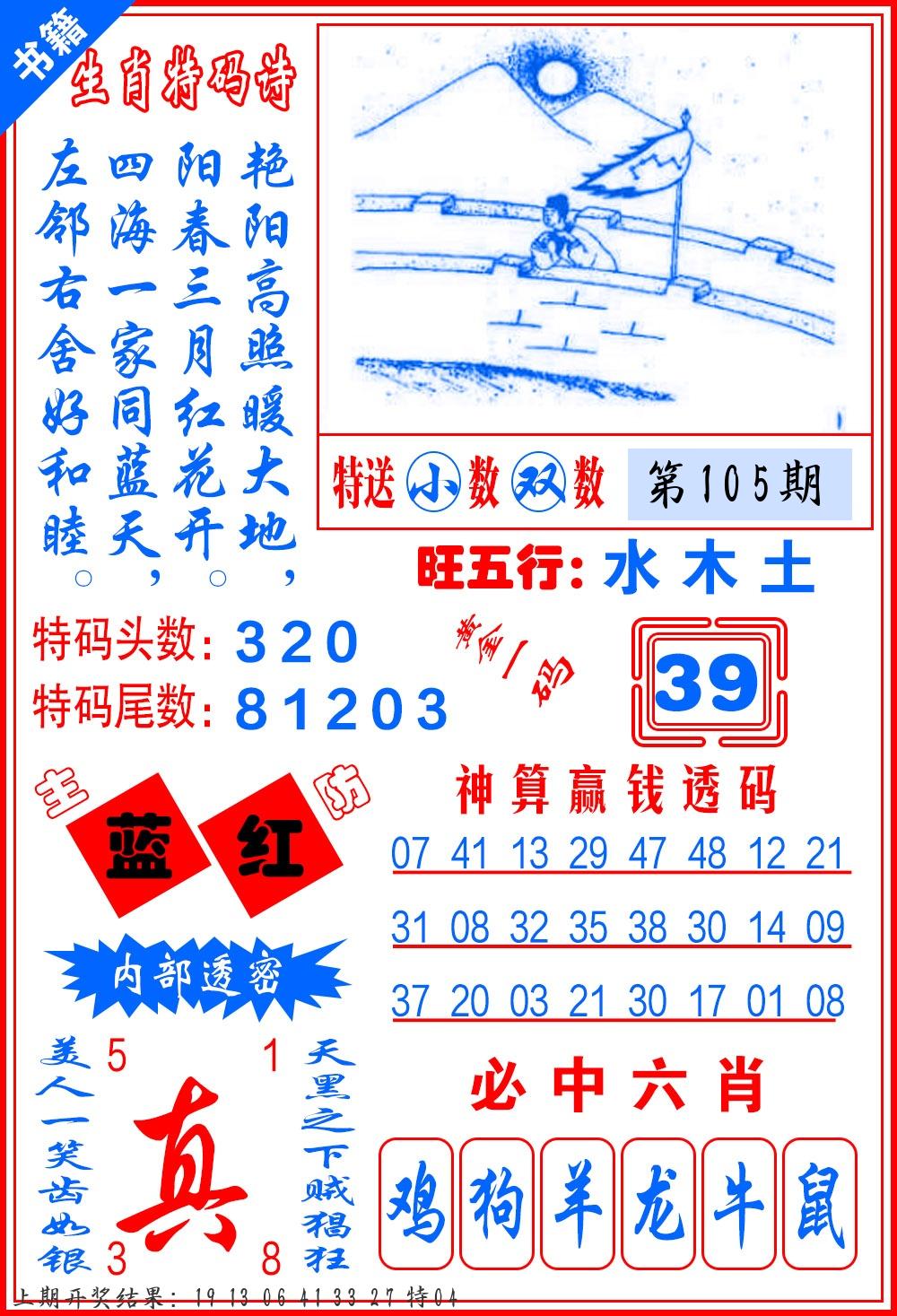 106期绝杀一波 【红波】 开 05虎对 |