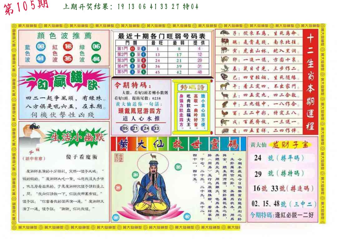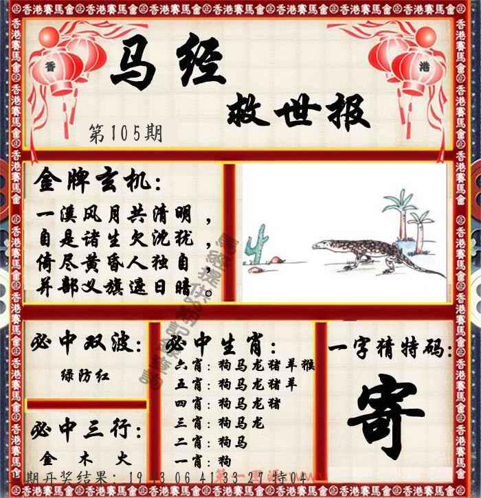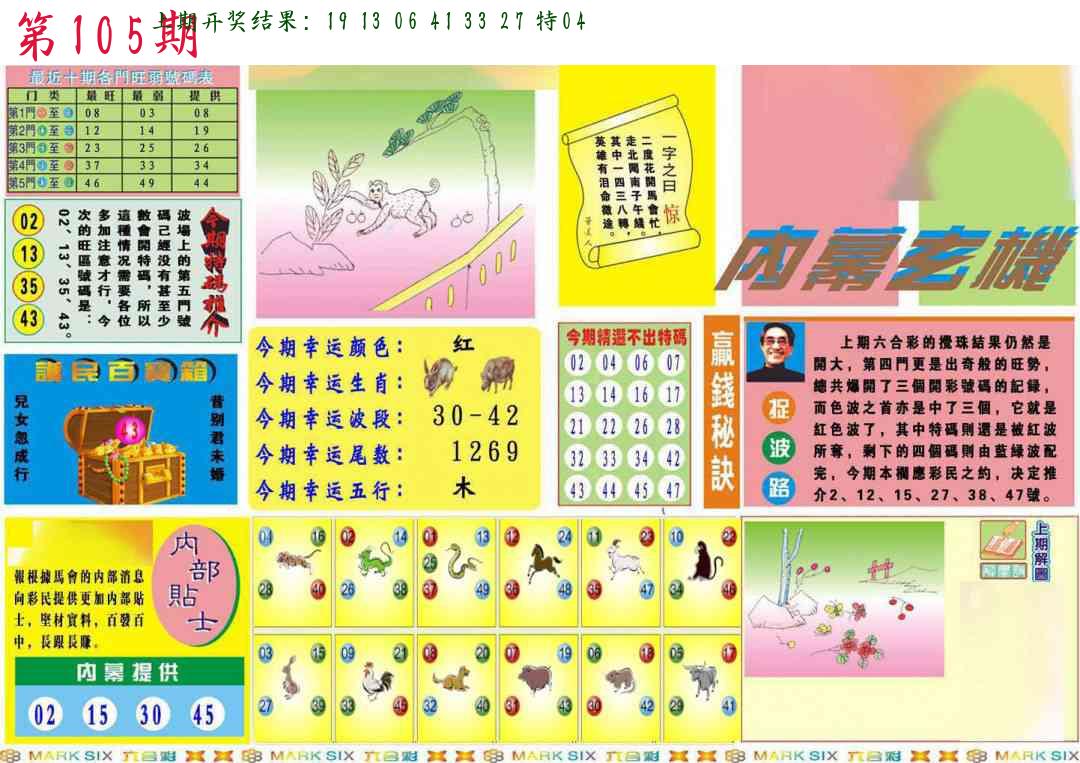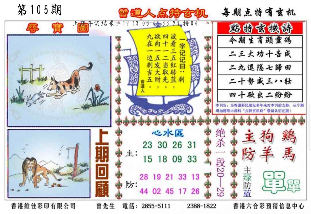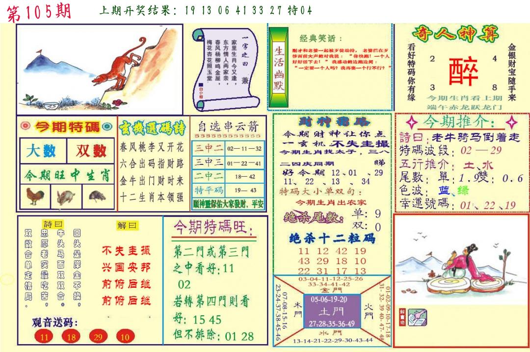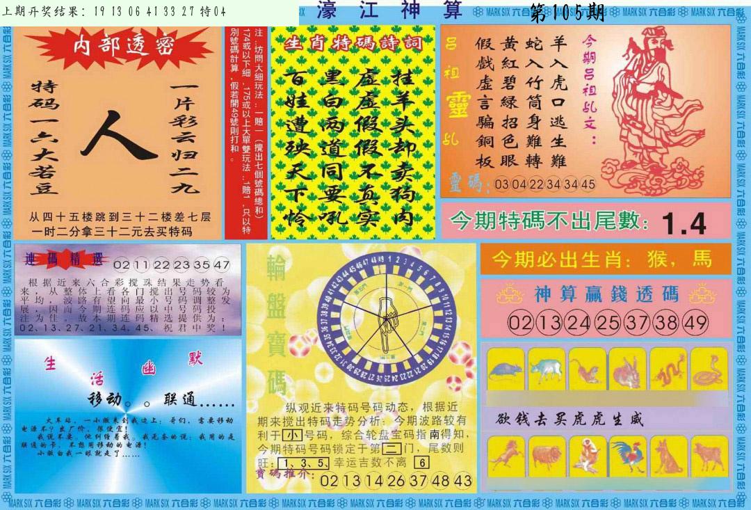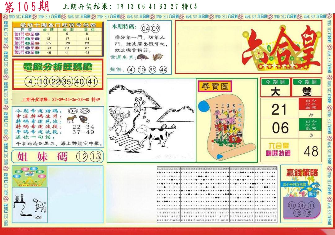 106期绝杀一波 【红波】 开 05虎对 |