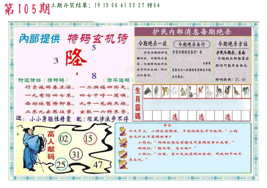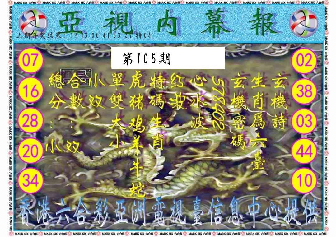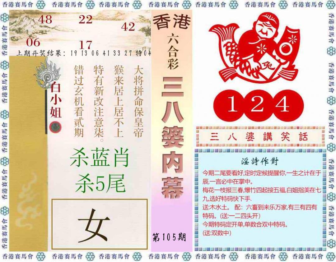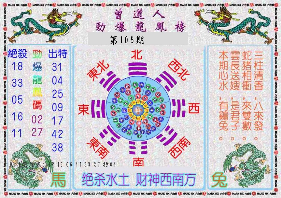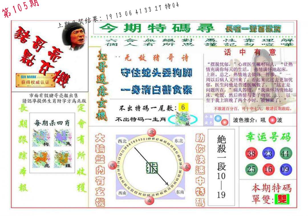 105期绝杀1.肖1.尾 【龙肖3尾】 开 38蛇对 |