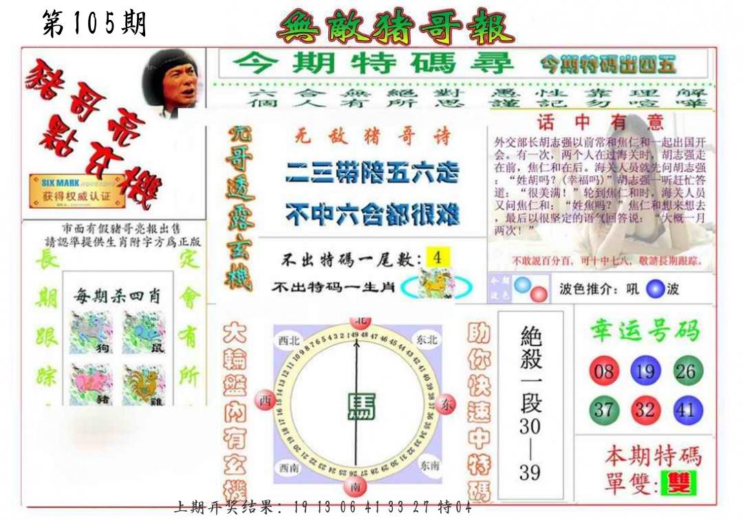 101期平特【猪猪猪】开20猪对 |