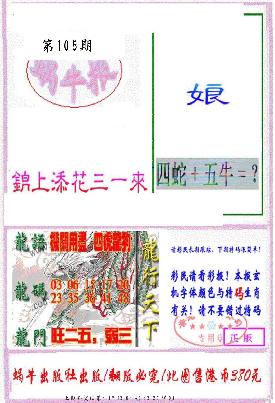 105期 【111】开38蛇错 |