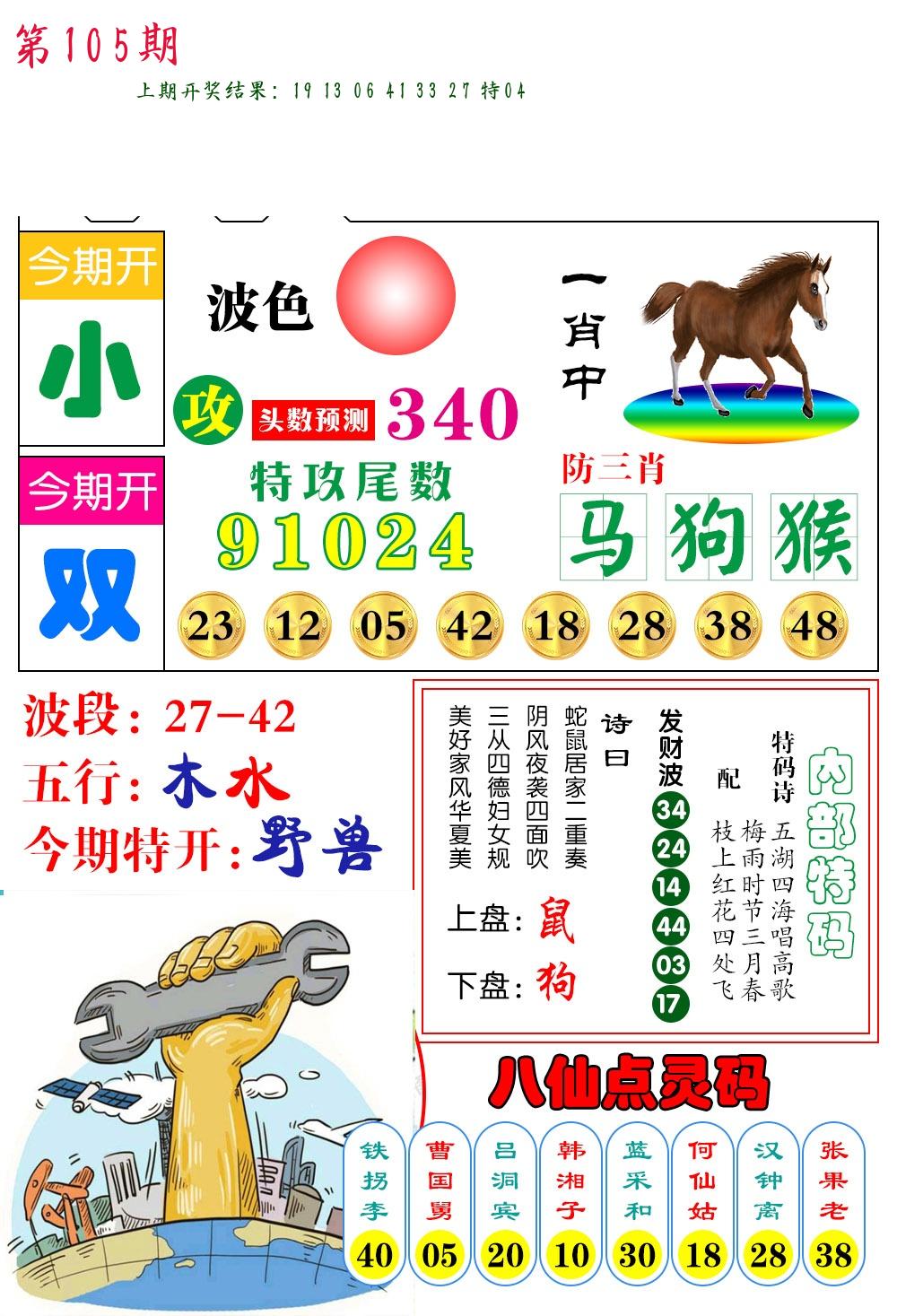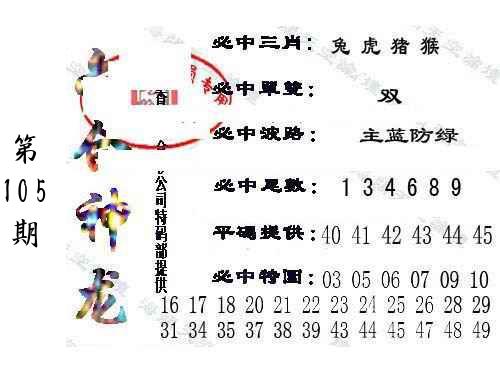 | 105期推荐五肖: 龙牛猪虎猴 ~~稳准狠 |