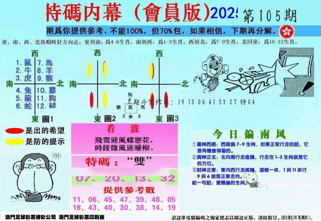 106期 【111】开11猴对 |