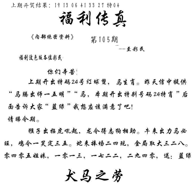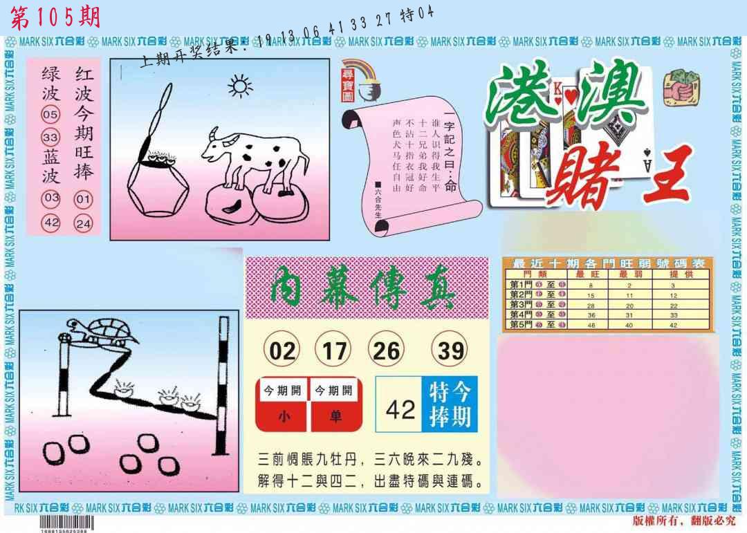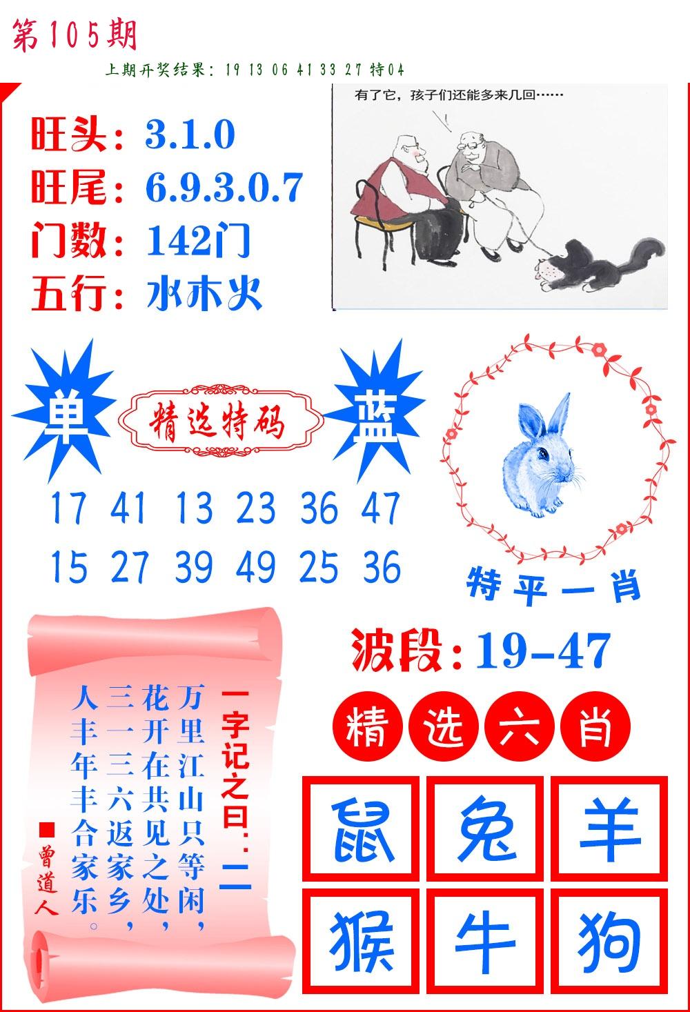 104期绝杀一波 【蓝波】 开 04兔错 |