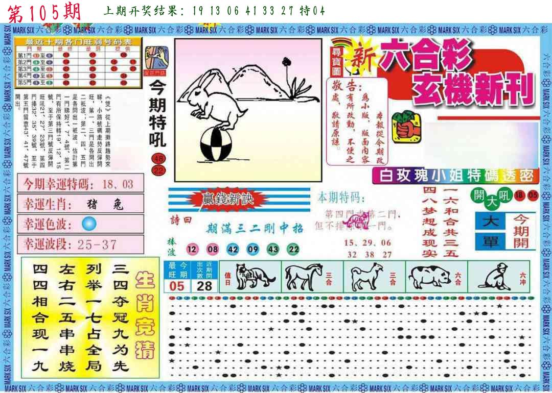 | 106期推荐五肖: 鼠虎马猴兔 ~~稳准狠 |