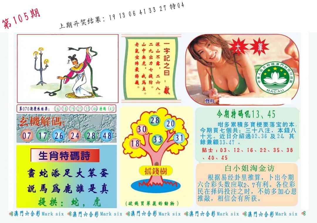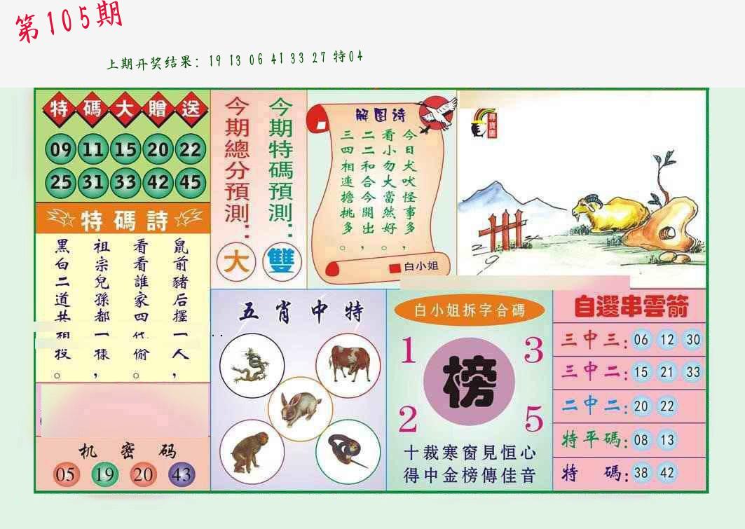 105期必中九肖 (38蛇错)