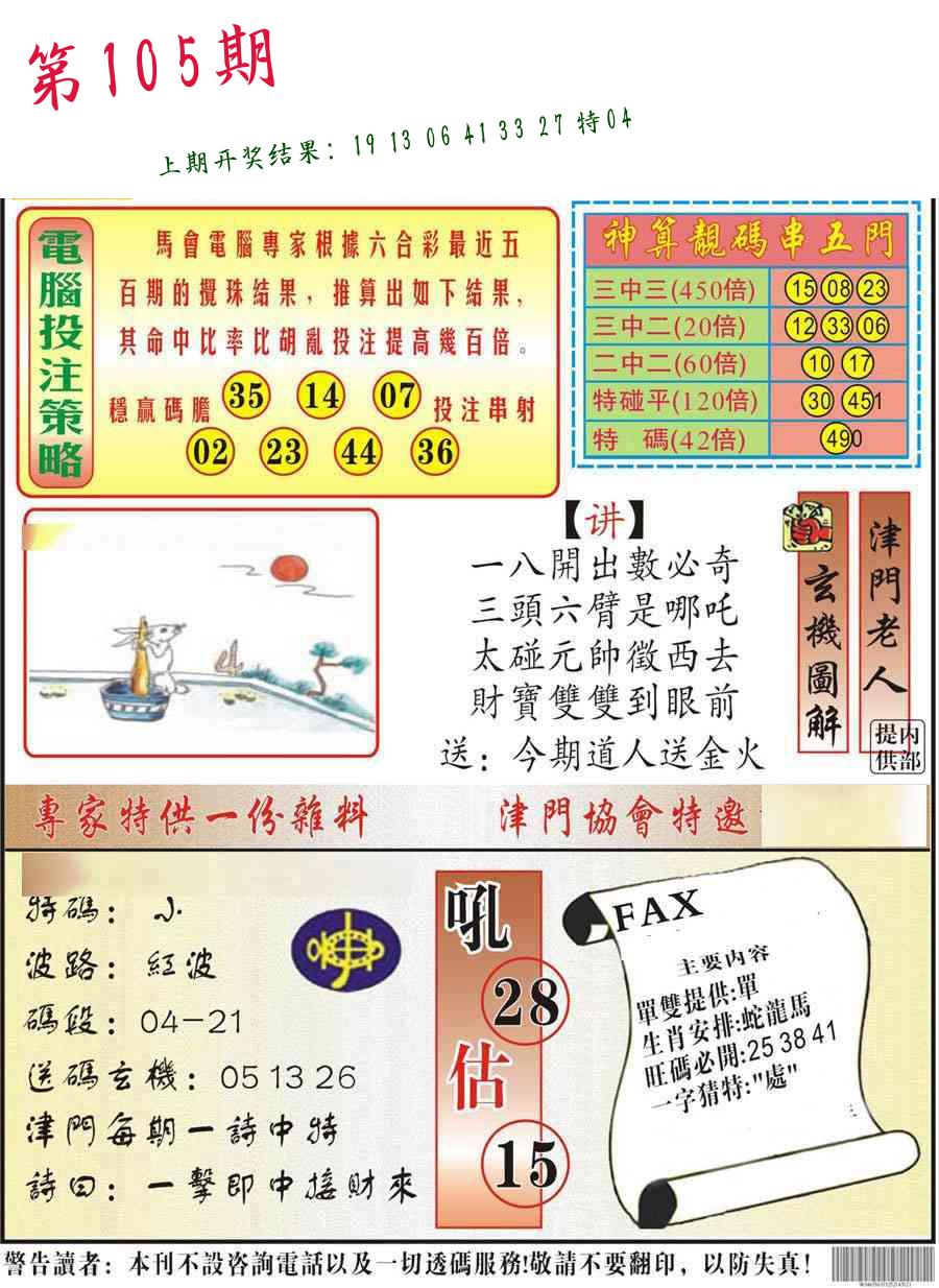 105期 开38蛇准 |
